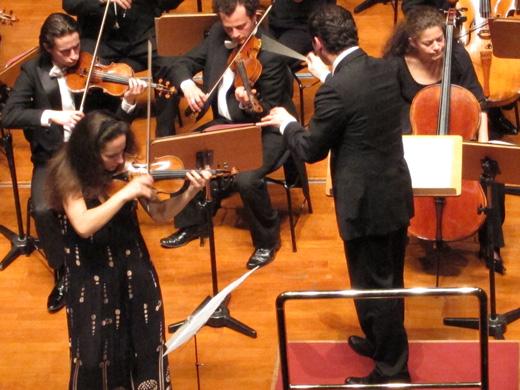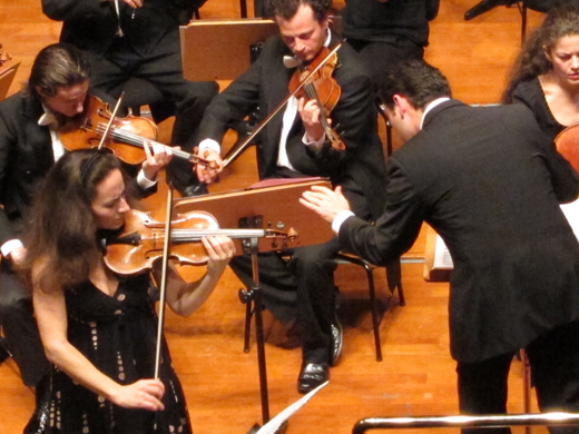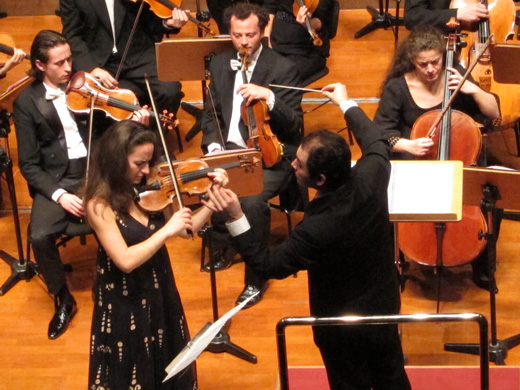 On peut être enchanté du duo de choc que font les deux musiciens surdoués tant le résultat est magnifique et ce depuis leur rencontre. Que ce soit au disque, récemment paru chez Naïve, en concert à Toulouse pour l’AIDA (les mécènes de l’orchestre) ou en région, voir même en tournée, le deuxième concerto de Prokofiev pour violon et orchestre est porté à l’incandescence par Geneviève et Tugan, en amoureux éperdus de la beauté et de la passion musicale. Dès les premières notes du concerto, a capella, par le violon, l‘auditeur sait qu’il a affaire à une violoniste rare. Le son plein, viscéral et rauque de son stradivarius aiguise notre écoute. L’accord entre le chef, la soliste et tout l’orchestre est ensuite vertigineux. Les gestes de partage le prouvent l’entente entre le chef et sa supersoliste est harmonieux.