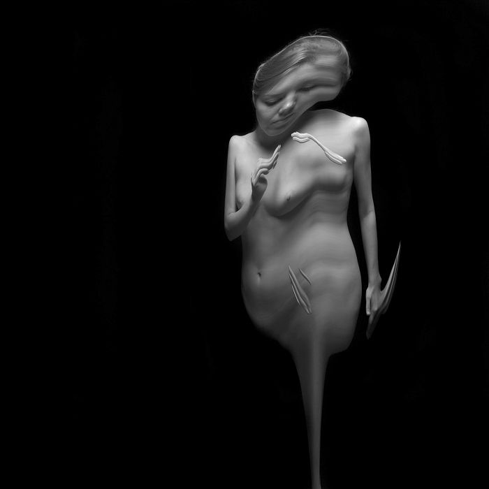 On peut enfin rappeler les travaux du photographe Hongrois André KERTESZ. En 1933, il publie dans le magazine Le Sourire une série de photographies intitulée « Distorsions ». Il restera toujours fasciné par ce travail montrant des modèles aux chairs déformées, reflétées par les eaux, les miroirs ou les phares d’automobiles.