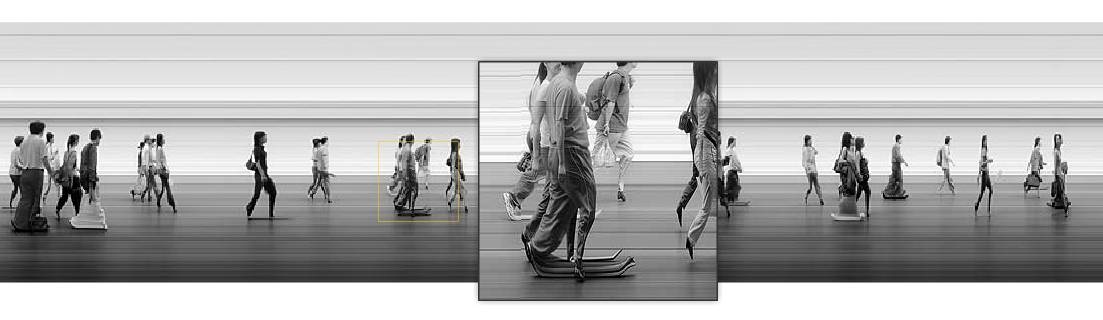 Dernier exemple de personnages étirés, avec les travaux d’ Adam Magyar, de grands panoramiques réalisés avec un scanner sur une ligne de 1 pixel.