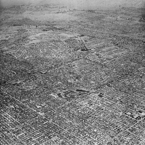 Un point de vue plus urbanistique avec ses vues de Los Angeles, plus en motifs, et lignes ordonnées avec sa série OBLIVION