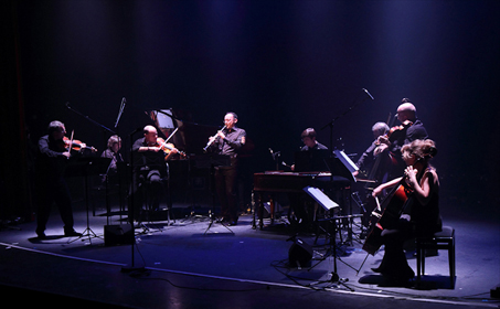 Le Sirba Octet autour d’Isabelle Georges est une bien agréable découverte****. Fondé en 2003 par le violoniste Richard Schmoucler et formé par sept autres musiciens classiques issus des formations les plus prestigieuses, il propose une lecture originale du répertoire yiddish et crée des programmes musicaux inédits qui allient la musique de chambre, la musique symphonique et la musique traditionnelle. En 2007, il s’associe aux multiples talents de la chanteuse Isabelle Georges et produit Du Shtetl à New York, un programme aux influences de la comédie musicale américaine et de musique yiddish, qui nous est offert ce soir.