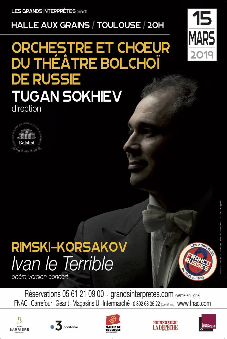 Profitons-en pour enfoncer le « clou d’or ». Le lendemain, c’était Ivan le Terrible de Nikolaï Rimski-Korsakov. Idéal pour comprendre, grâce à cette version concert, ce que l’on peut appeler une partition d’opéra. C’est un véritable ruissellement musical rendant les passages plus calmes et même silencieux…musicaux !! Ils sont 80 choristes aux interventions “divines“, ils sont près de 80 musiciens sous les ordres eux aussi de l’Impérator Tugan Sokhiev. Les solistes sont irréprochables : Ivan est la basse qu’il faut, le Prince, père adoptif, aussi, l’amoureuse Olga et son amoureux de ténor forment un couple idéal, le baryton qui la voudrait est sans reproche, côté voix, etc… on ne peut que s’incliner devant l’ensemble.