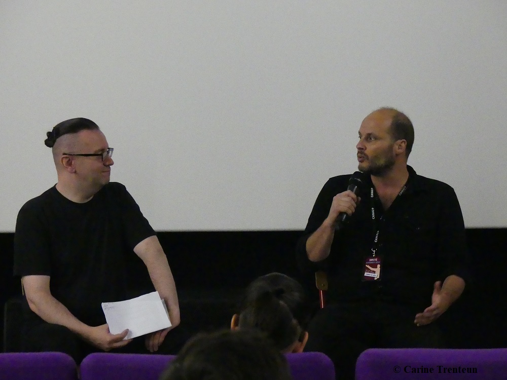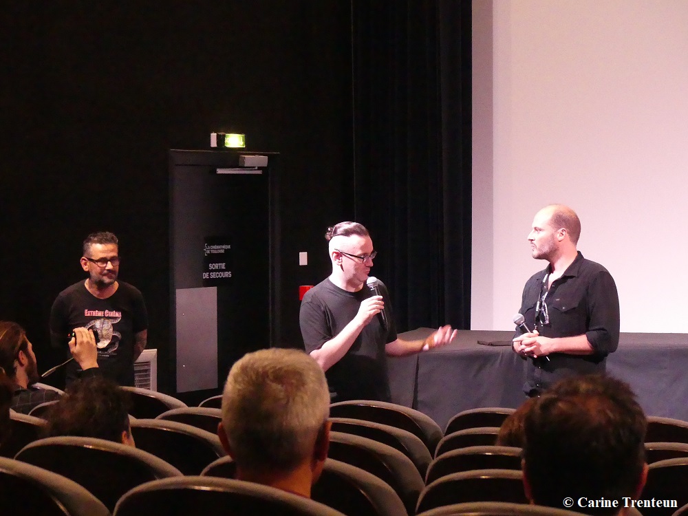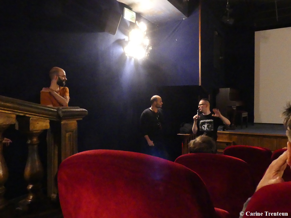 Et puis cette édition a permis de très belles rencontres, de très belles reprises et d’avant-premières ! Retour en photos ci-dessous avec le généreux marathonien Fabrice Du Welz, Sébastien Marnier, les Zombie Zombie, Maxounet, Jérémie de l’American Cosmograph, Benoît Forgeard et Jocelyn Manchec (le papa du Fanzine ABORDAGES), Gérard Courant et Professeur Thibaut de la Cinémathèque de Toulouse, Guillaume Banniard et Pauline Quinonero de L’Infini détail, Nathan Fischer (de Stray Dogs) et Johannes Nyholm et Marie-Stéphan Guey de l’ABC, l’équipe super nombreuse de Music Hole qui est restée dans le fond de la salle quand le film a gagné l’Amphore du peuple, pour applaudir les réalisateur et Wim Willaert (je trouve ça très classe !), Noël gloup-gloup Godin, Benoît Delépine, un demi-Jiho, Luc Weismuller et Jean Dujardin :