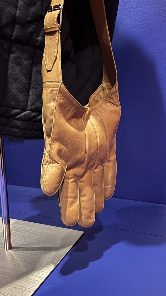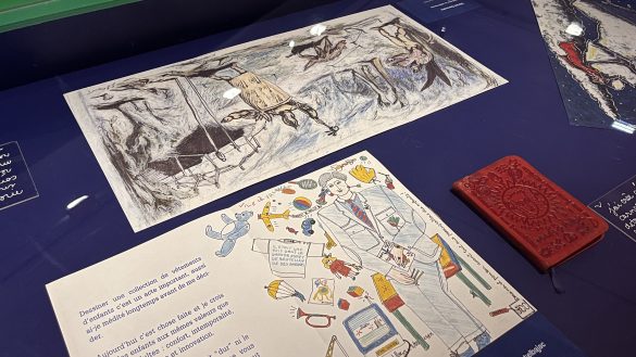 Dans les salles composées d’artefact de l’exposition, Castelbajac orchestre un véritable dialogue entre mode, art et mémoire. Mémoire ou plutôt souvenirs. De rencontres, de dons de certaines pièces à des proches, amis, célébrités. Ils côtoient dans cette pièce des photographies, dessins et accessoires iconiques qui racontent les influences du créateur. Au centre de l’espace, une installation de verre serpente la pièce, jalonnant le parcours comme une ligne narrative, tout en abritant des artefacts personnels, des croquis intimes, des accessoires de scène et objets de pop culture. Ces derniers, qu’il s’agisse de pièces portées par Lady Gaga ou Beyoncé, ou des souvenirs de famille et d’atelier, vont au-delà de leur statut d’objets pour témoigner tant de sa pluralité artistique que de ses inspirations profondes.