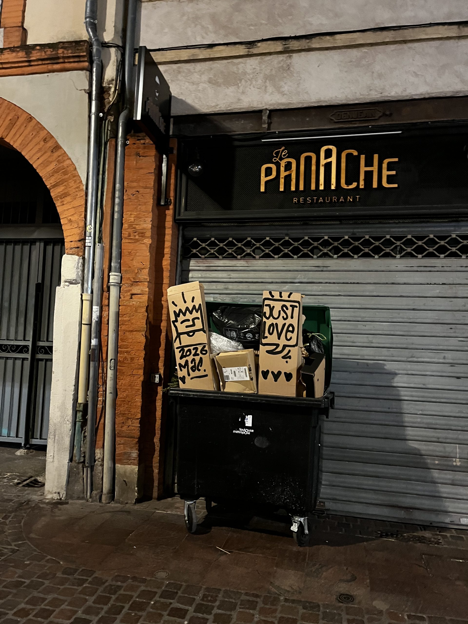 Arthur aka Jeune Mac comment à s’imposer dans le paysage du street art toulousain, en déposant ses dessins dans l’espace public avec une approche originale et spontanée. Autodidacte, il suit un bachelor en design graphique avant de se lancer en indépendant dans l’art et sa démarche actuelle. Il lance sa propre marque de vêtements, Anjulu, et déplace ensuite son univers au fil des rues. Depuis novembre 2025, muni de ses Posca, il profite de ses promenades quotidiennes dans la ville rose pour chercher des encombrants sur lesquels dessiner son personnage, accompagné de messages positifs de courage. Plus qu’un simple street artist, Jeune Mac revendique une démarche tournée vers la transmission et le partage, en particulier auprès des jeunes. Aujourd’hui, il commence à se faire un vrai nom à Toulouse, avec l’envie de marquer la ville à son échelle, sans jamais perdre l’essence de ce qui l’a fait commencer.
