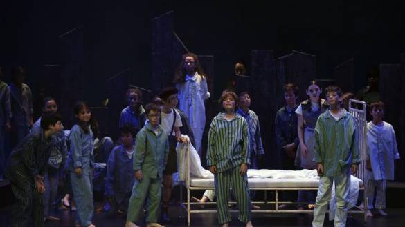 Des pyjamas rayés au pas. Départs et arrêts impeccables sous l’autorité d’un pardessus sombre, de bottes lugubres. Un rythme effroyable amplifié par les planches. Les pyjamas s’écroulent, insoutenable vision de…